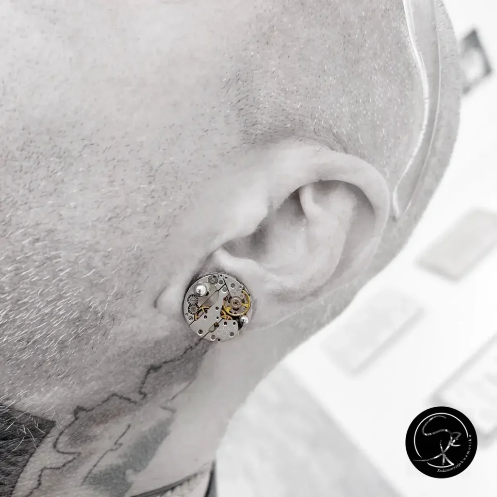 A szúráskor bekerülő ékszer implantátum minőségű orvosi fém, nem kophat, nem színeződhet el, ebből kifolyólag bármeddig a füledben maradhat.