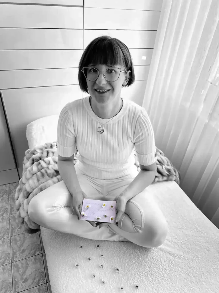 Rózsika néni lepett meg egy rózsaszín kis papírral, amin a következő szavak álltak: „Százszorszép kozmetika”, és a felirat mellett ott díszlettek a drága Rózsika néni keze által megrajzolt százszorszépek is.